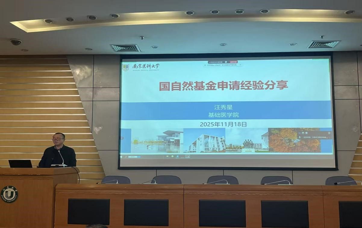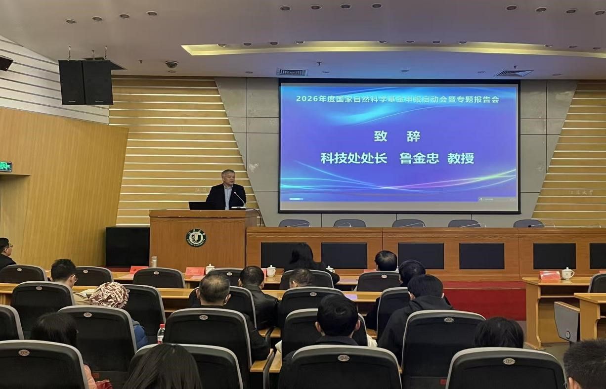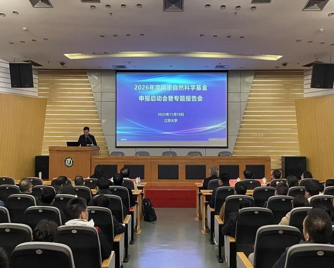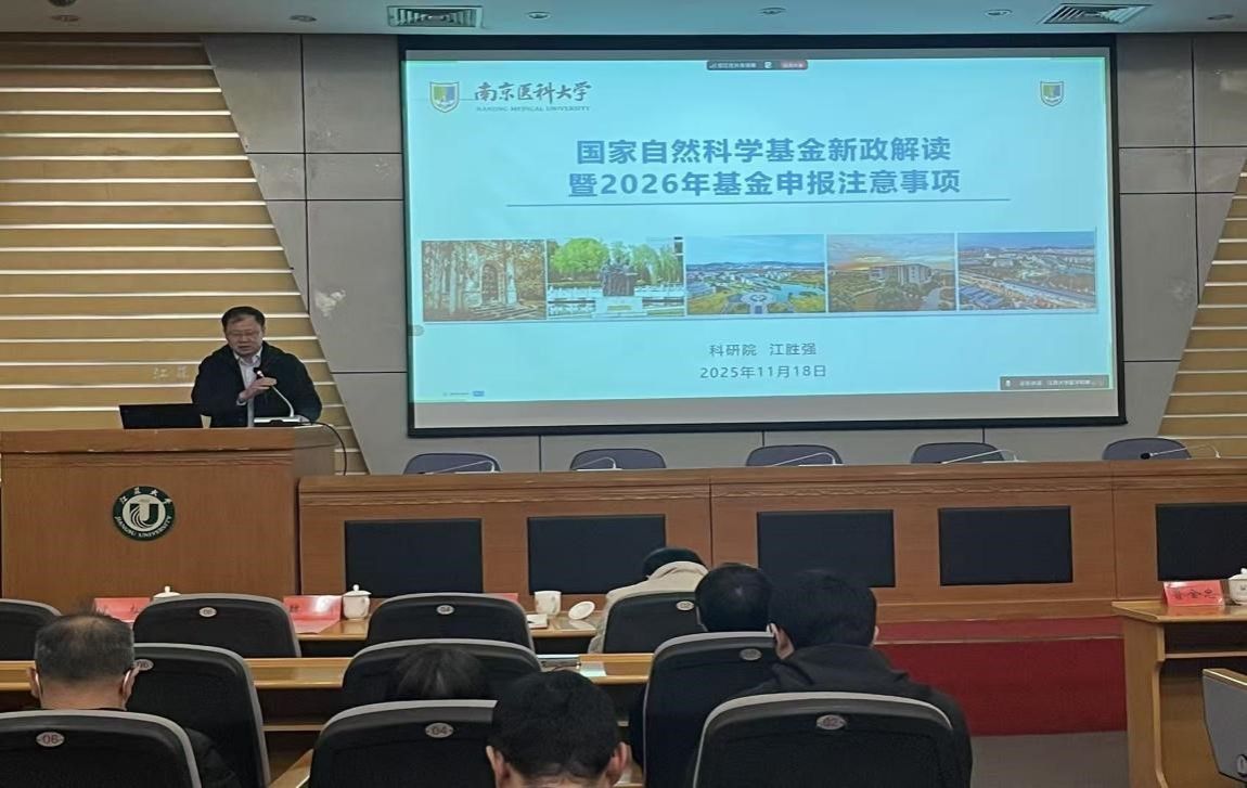 11月18日,学校医药领域2026年度国家自然科学基金申报启动会暨专题报告会在会议中心第一报告厅举行。活动由科技处指导、医学院组织。会议特邀南京医科大学科研院江胜强研究员、苏州大学唐仲英医学研究院黄玉辉教授、南京医科大学基础医学院汪秀星教授作专题报告。科技处处长鲁金忠,医药领域各二级单位负责人、科技条线职能部门人员、相关教师及研究生参会,我校镇外附属医院相关人员通过线上方式参会。报告会由医学院副院长张徐主持。